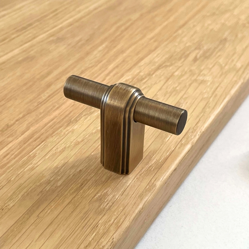 Gi et snev av eleganse til interiøret ditt med våre elegante T-bar-håndtak, laget av eksklusiv solid messing. Designet for å komplementere både moderne og klassiske stiler. Leveres på 2-6 dager med Bring.